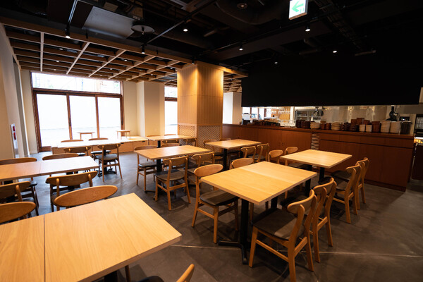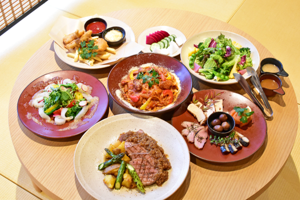 ホテル縁道の中にある、地域に開かれた食堂です。カツやチキン南蛮、焼きサバなど、フレンチシェフが考案した体に優しい主菜とごはん、副菜の和定食を食べながらゆっくりとランチの時間を楽しめます。